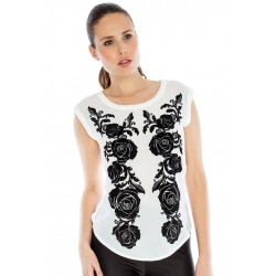 Flock Print Chiffon Top - Black