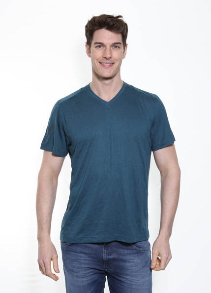 Turquoise Adidas Clima365 v neck t-shirt.