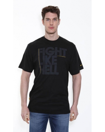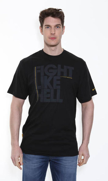 Black nike t-shirt with a grey "Fight Like Hell" and yellow "Livestrong" print on the front.