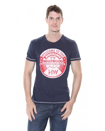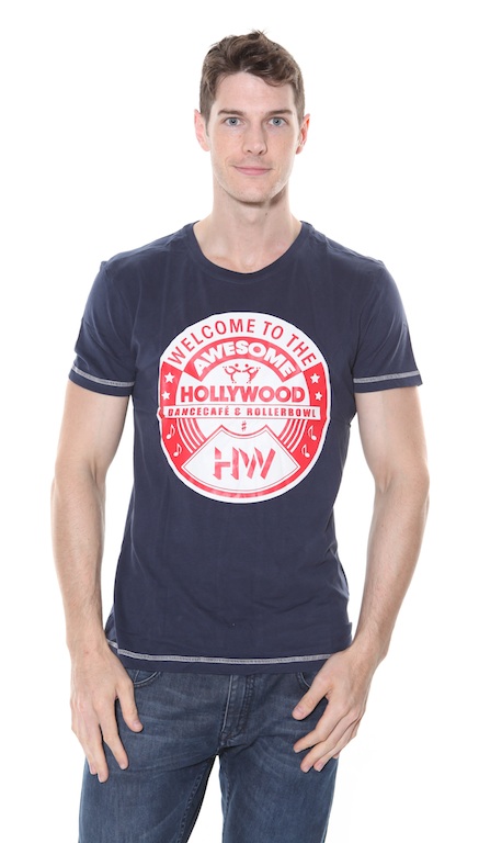 Solid Jeans Bronson Short Sleeved Dark Navy T Shirt with Red print: