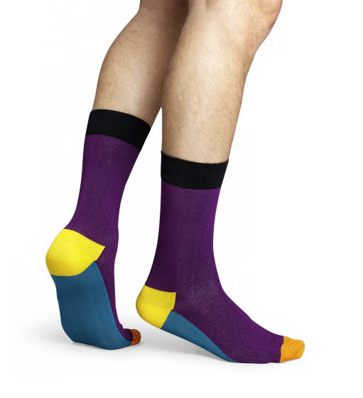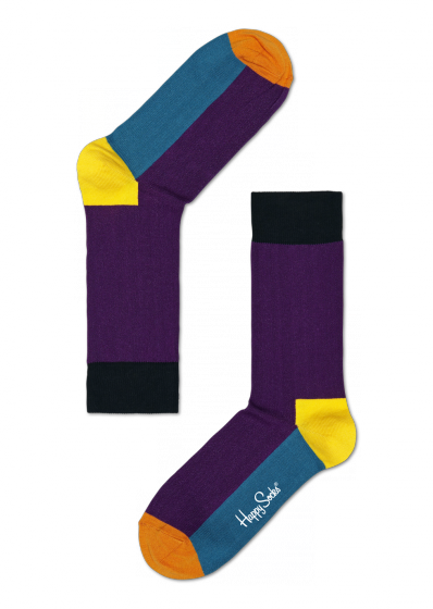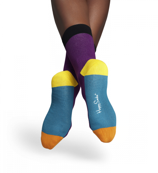 Happy socks for happy feet, with five colour pattern socks in shades of purple, orange, green and yellow and Happy Socks print on the bottom.