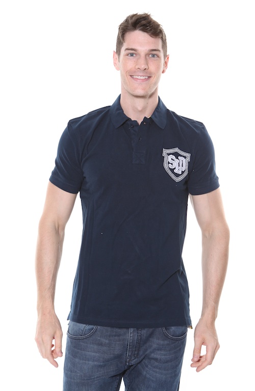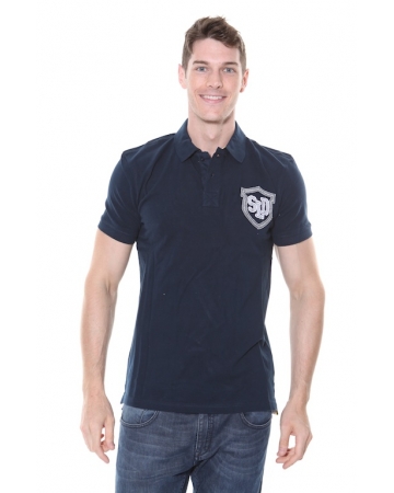 Solid Jeans Frederik Short Sleeved Dark Navy Polo Shirt with white SLD emblem on chest.
