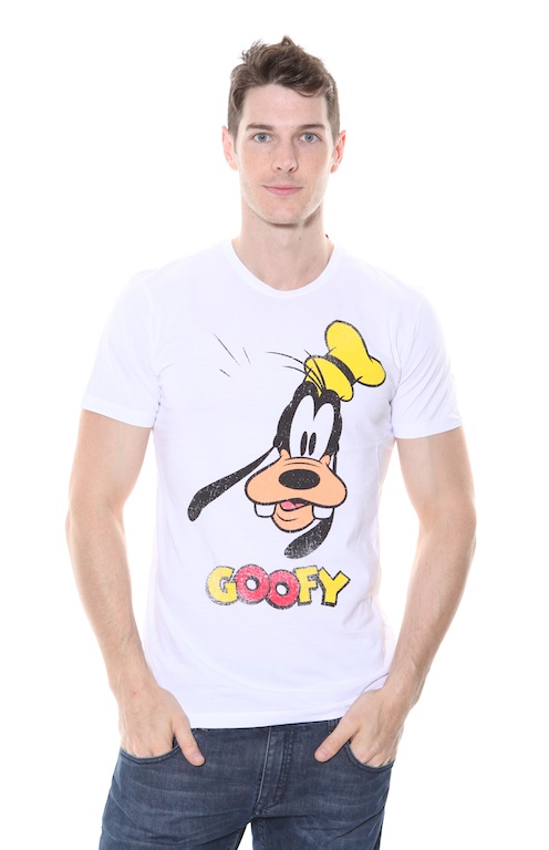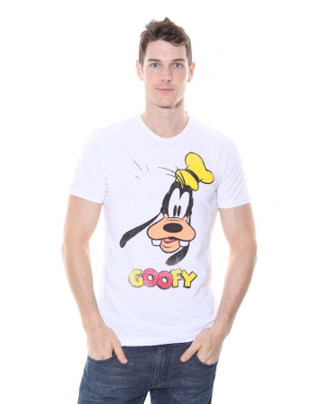 Disney Licenced Goofy Cartoon T Shirt. Short sleeved, white, tight fit t-shirt with a faded Goofy image print on front.