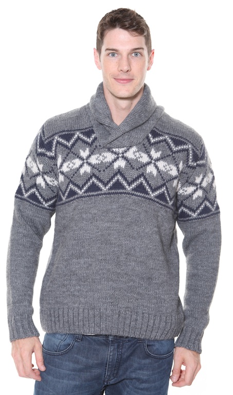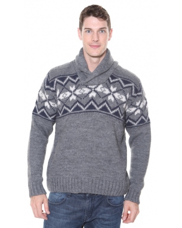 Men's Pepe Jeans London Knott Knit jumper in Grey Marl features jacquard weaving, ribbed cuffs and hem and shawl neckline.