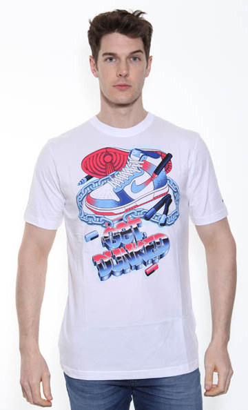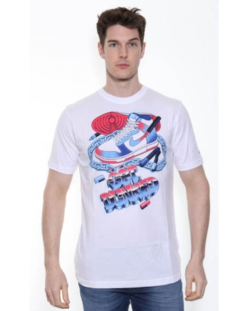 Men's standard fit Nike t-shirt in a bright white colour with round neckline and a playful design print on the front.