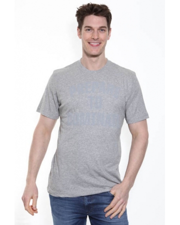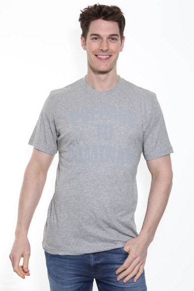 A grey fleck, round neck, nike t-shirt with light grey "Prepare to Dominate" logo across the chest and a discreet "Dri-Fit" logo on hem.