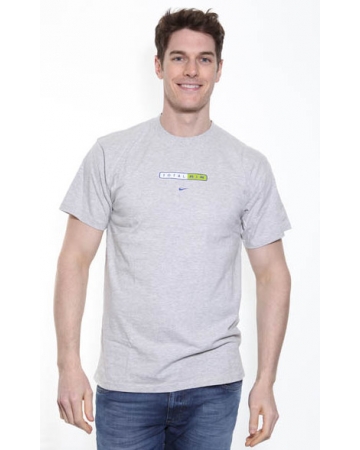 A casual light grey, round neck, short sleeve, nike t-shirt with "Total Air" print on chest and "TL Air" abstract print across the back in green and blue.