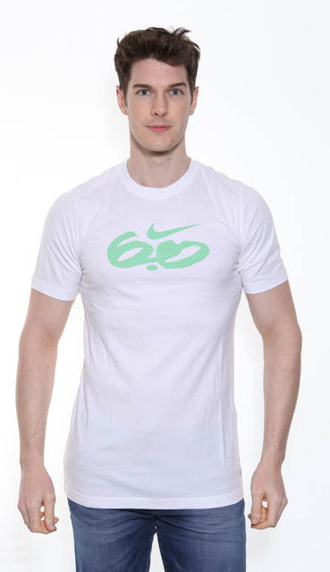 White Nike t-shirt with green gingham 6.0 print on the front.
