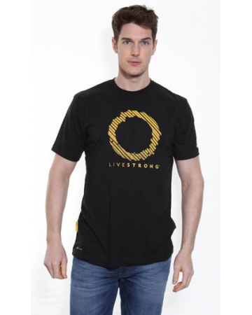 Black Nike Dri Fit t-shirt with "Livestrong" and yellow circle print on the chest.