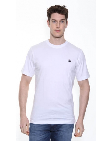 White Nike t-shirt with black N and nike logo embroidered on the chest.