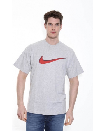 Grey nike t-shirt with a red nike tick print on the front.
