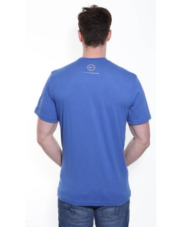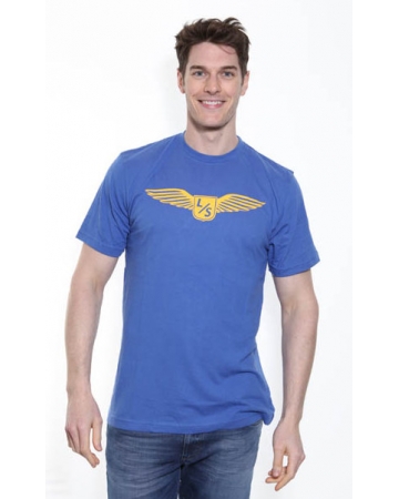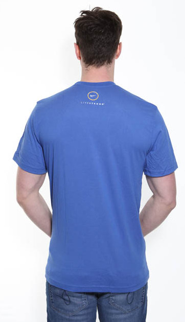Blue Nike, Dri-Fit t-shirt with yellow wings and L/S crest print on the front. Nike Livestrong print on the back.