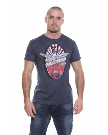Regular fit, dark navy, short sleeve t-shirt with round neckline and American Eagle print on the front in shades of blue, red and white.