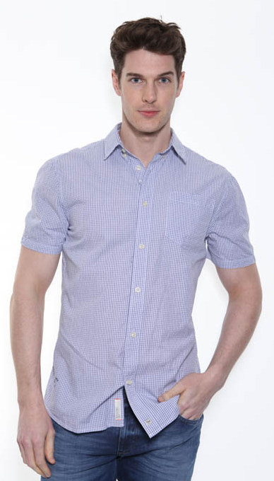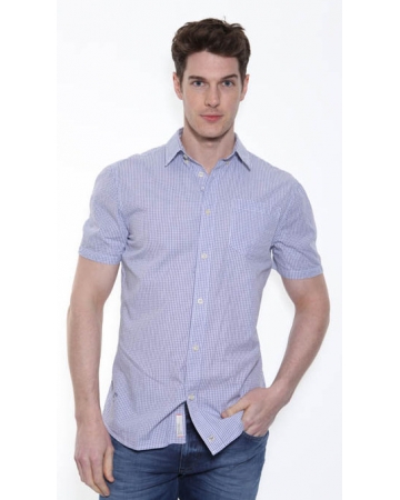 A regular fit, short sleeve, check shirt with high closing button placket and logo embossed buttons. A kent collar, chest pocket and a discreet Pepe Jeans London patch on bottom of shirt.