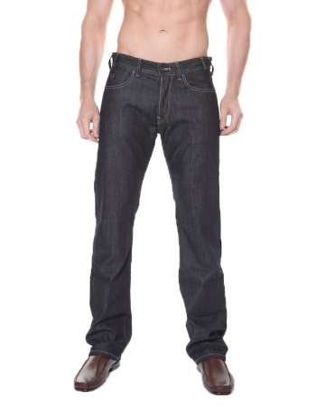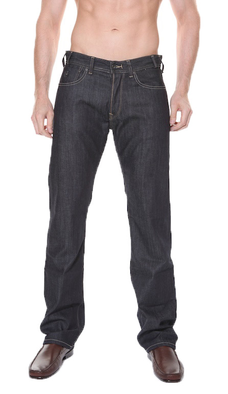 A comfort fit, regular waist, straight leg jeans with stitch detailing and a button front zipper.