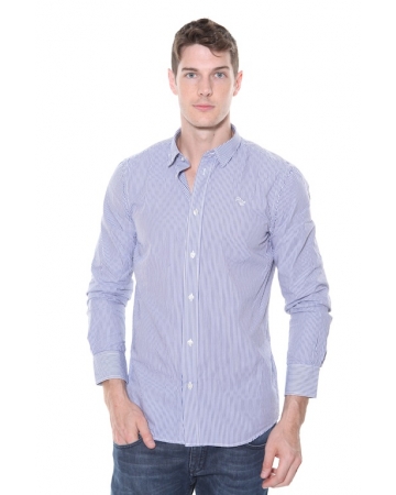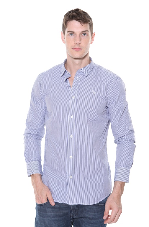 Pepe Jeans Gents Pelham shirt. The shirt is blue and white in colour in a stripe pattern.