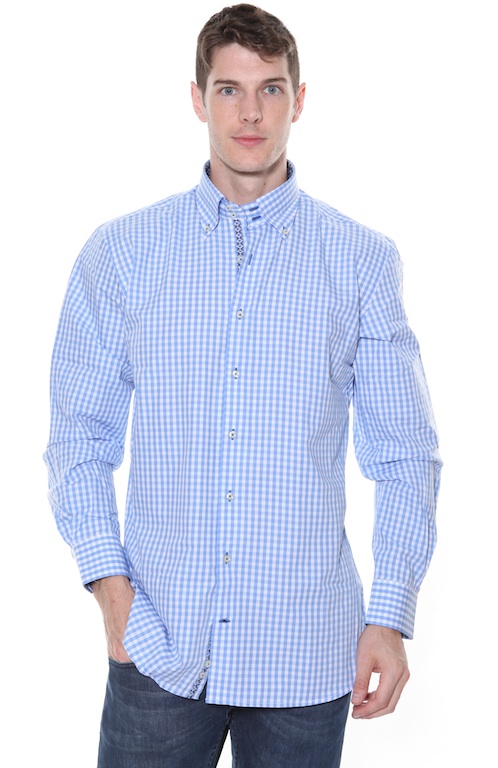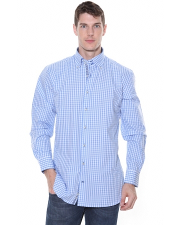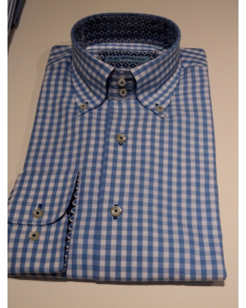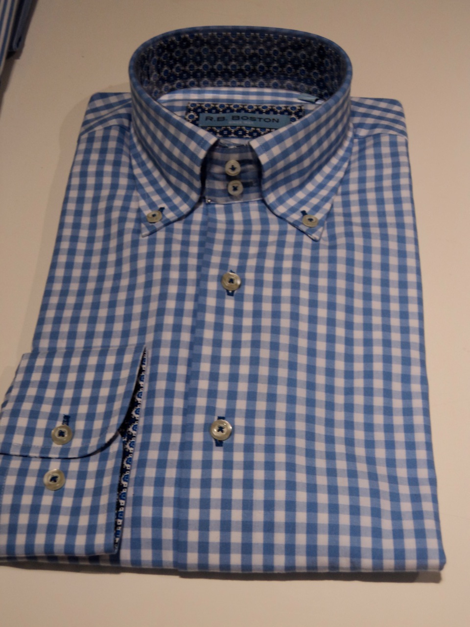 RB Boston Blue Gingham Check Long Sleeved Shirt.