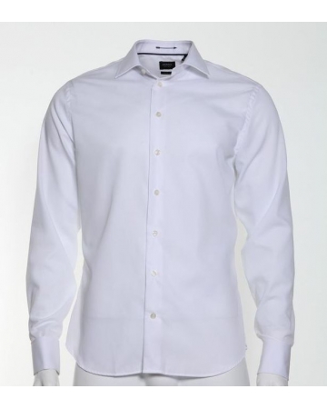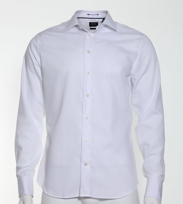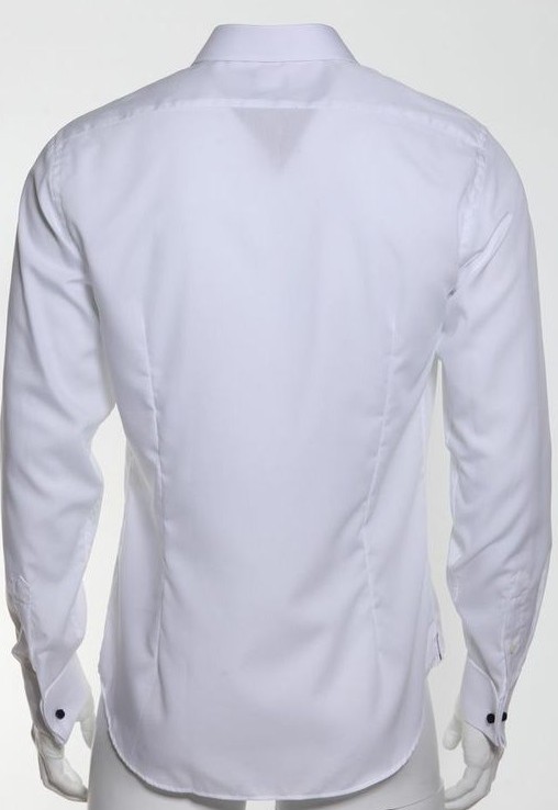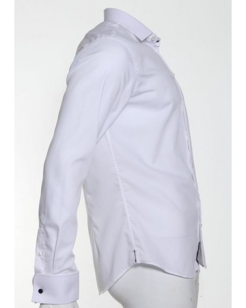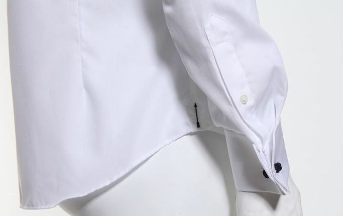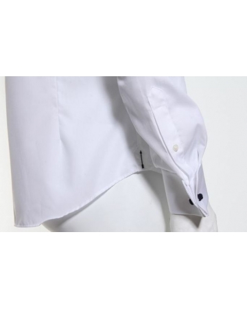 A crisp white, long sleeved shirt with flattering slim fit and double cuffs for smart cuff links to close. Also features Arrow logos on the bottom hemline of each side.