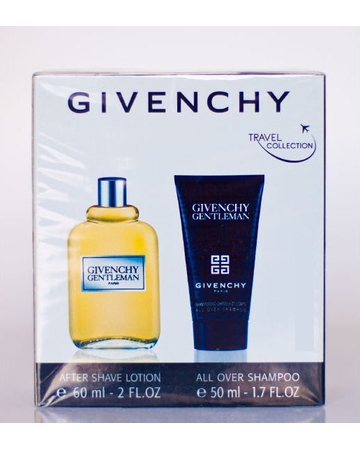 This is a perfect set for going on holidays or as a gift. Comes complete with a bottle of Givenchy Gentleman after shave lotion and a free gift of matching all over shampoo.