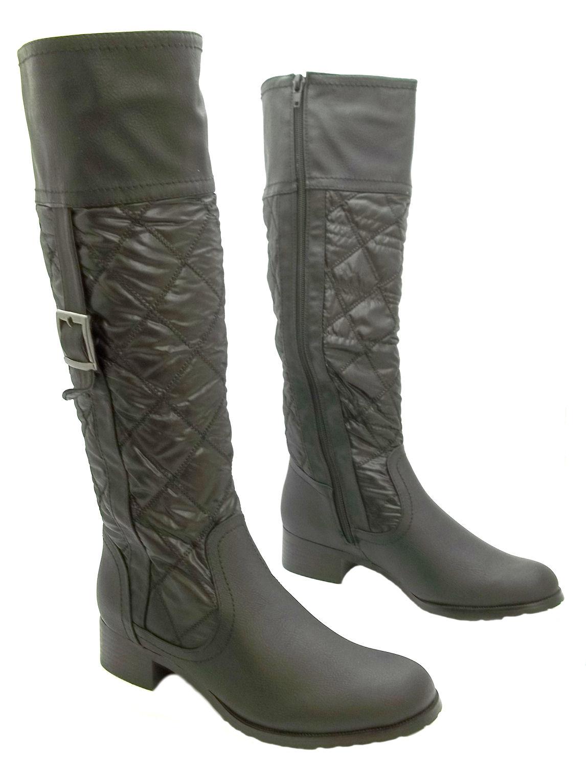 These Black Sandy Boots are a funky biker style, mid calf boot with a soft quilted style pattern and a zip up closure.