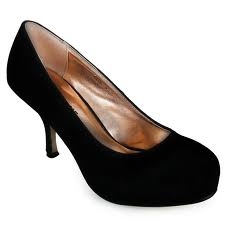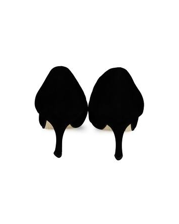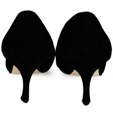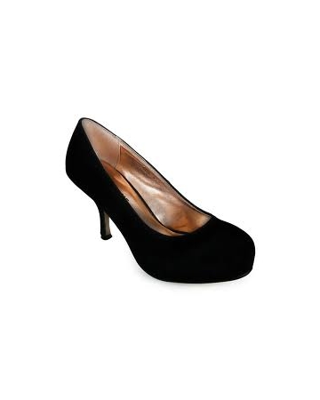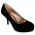 Faux suede shoe featuring a mid heel (3.5") with a rounded toe and in a black colour.