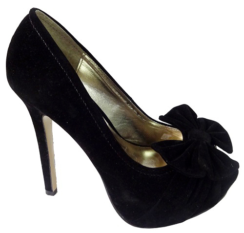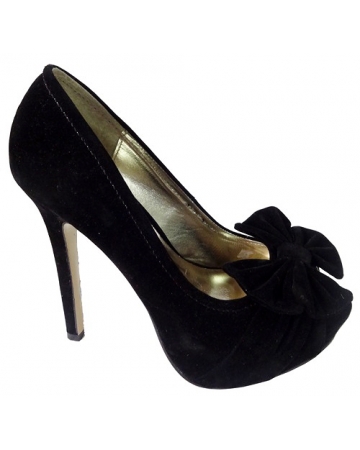 Black Suede Shoe with peep toe, cute bow detail and sexy stiletto high heel.