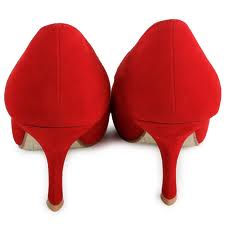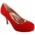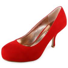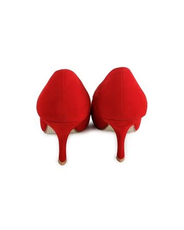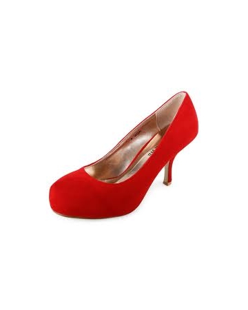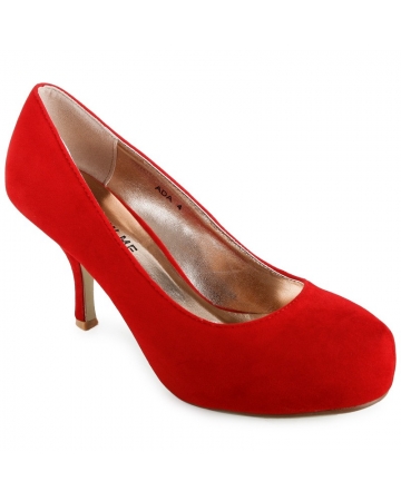 Follow Me Faux Suede shoe featuring a mid heel (3.5") with a rounded toe and in a bright red colour.