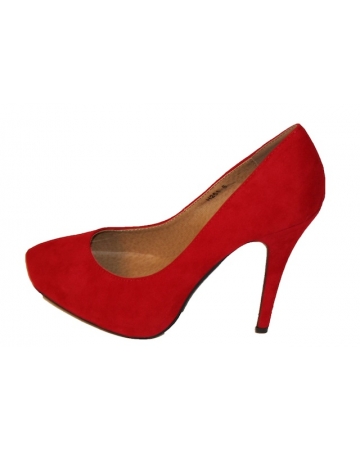 Core Shoe, a bright red faux suede shoe featuring a 4.5" high heel and has a smart rounded toe.