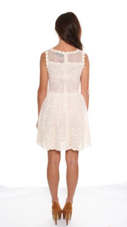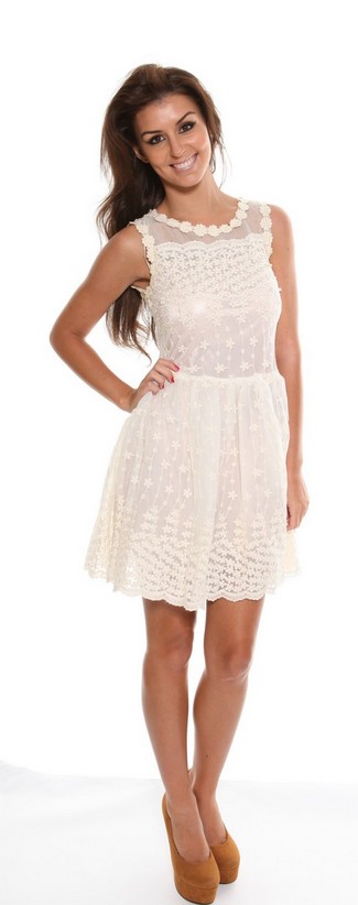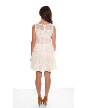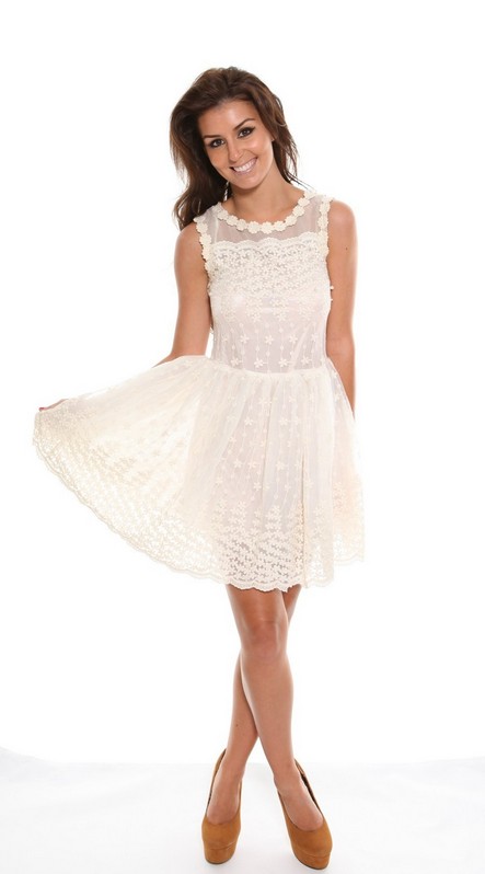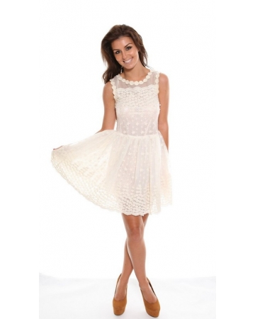 Add grace to your day with the Cream Ballerina Dress by Angel Eye London. This chic dress features a flower lace with nude slip, flowers and pretty pearl details around the neckline.