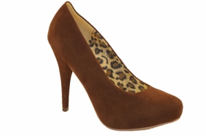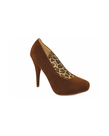 Ideal for any occasion, this chocolate brown high-heeled suede shoe features a 1" hidden platform for added comfort and aesthetic value.