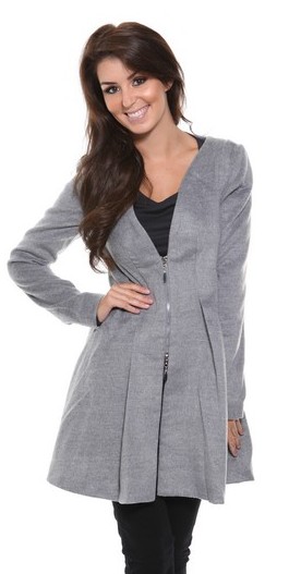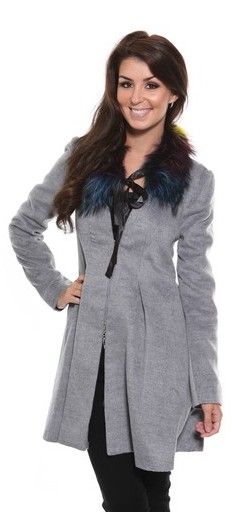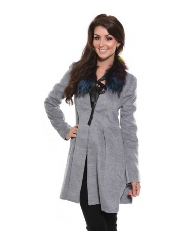 Have the complete look with this dark grey, faux velour Karen Coat by Charming Clothes. This well designed coat is fully lined with charming loose front pleats, and features a multi-colour faux fur, removable collar to coordinate with your fall colours.