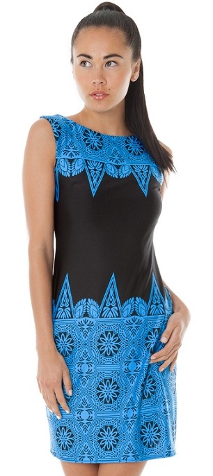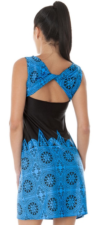 Made from a soft stretch jersey fabric, this mini dress is perfect for all accassions. A sleeveless dress with pretty pleated skirt detail, beautiful blue romanesque print with black sash from front to back and a twist back detail.