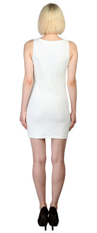 This beautifully tailored dress is sleeveless, has a flattering round neckline and sexy leather panels down the front and sides for a more edgy look. The bodycon, figure hugging fit of this dress gives a great body shape and its soft, slight elastane fabric makes it very comfortable to wear.