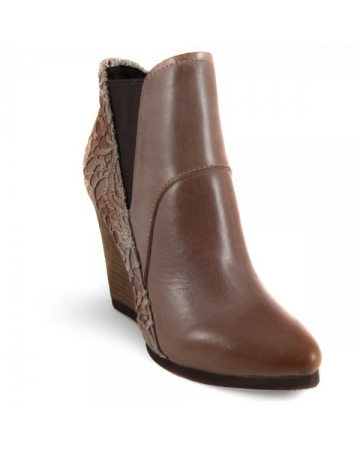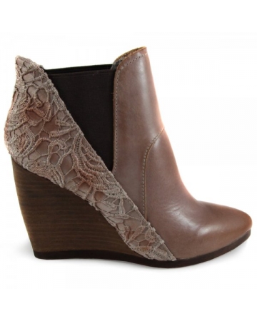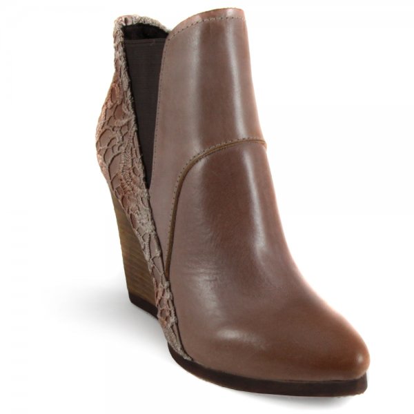 Blackmail Demi Boot in a tan colour with light brown lace detail and elasticated side panel. A very stylish boot with wedge heel which gives added height, while being extremely comfortable. Suitable for day or occassion wear.