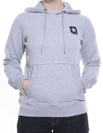 Classic Converse Grey hoodie with large front pocket, navy "Converse" logo embroidered on the front.