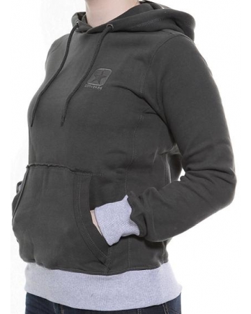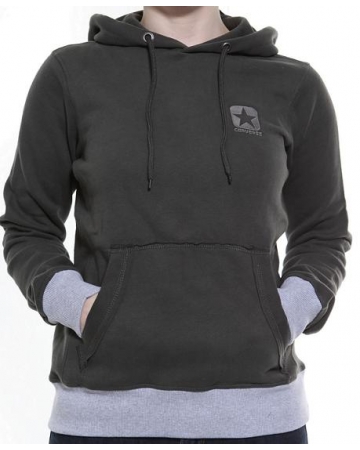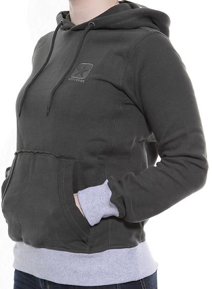Women's Converse khaki green hoodie with grey rib cuffs and hem and "Converse" logo embroidered on the front.