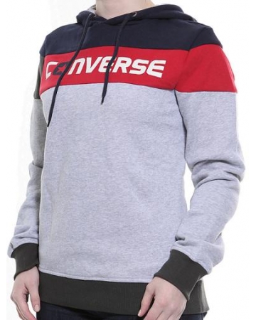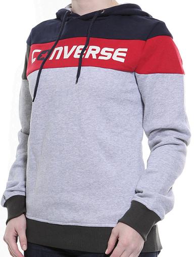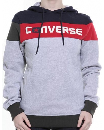 Women's Converse ash hoodie with wide stripes, rib cuffs and hem and "Converse" logo embroidered on the front.