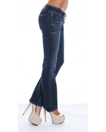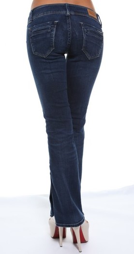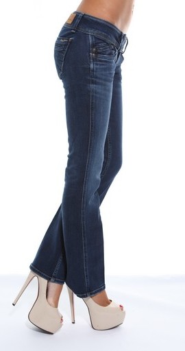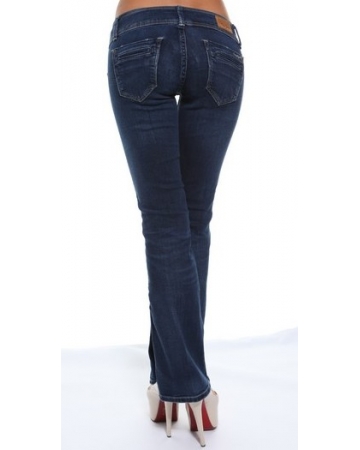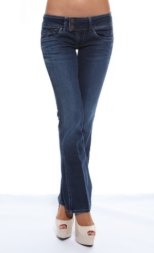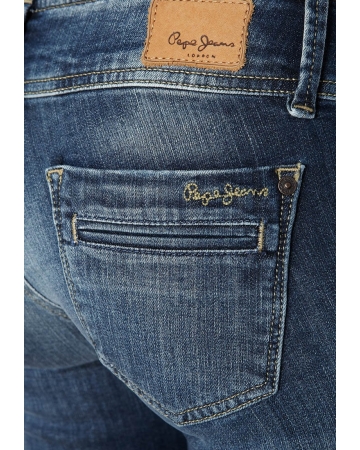 Flattering low waist, regular fit jeans with flare legs and double button waistband. Finished with 7 pockets and Pepe Jeans logo.