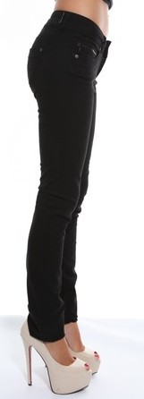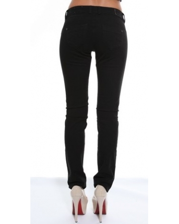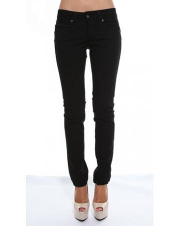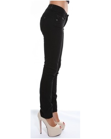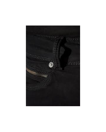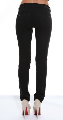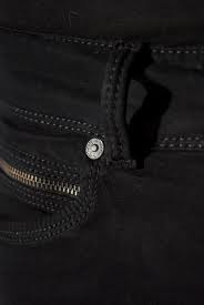 Soft touch black, slim fit jeans with regular rise, premium curve cut waist with a higher cut back for a flattering fit. Features belt loops to the waistband, a concealed zip fly with single button closure. Four pockets with embroidered design on the back pockets and one zip closure pocket and a leather brand patch.