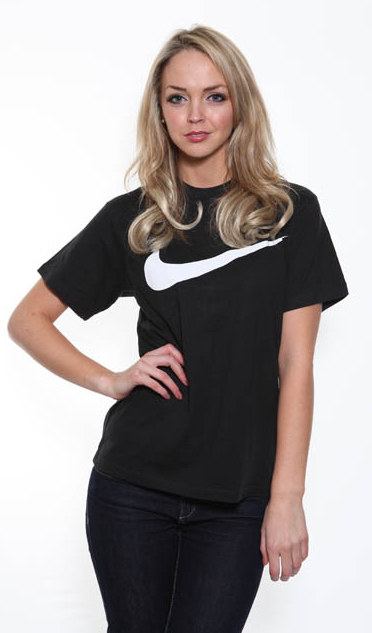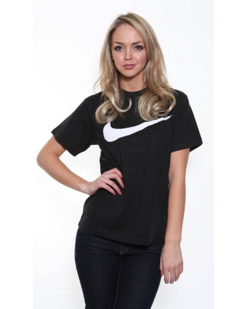 A classic round neck,standard fit, short sleeve black Nike t shirt featuring Nike symbol in crisp white across the chest.