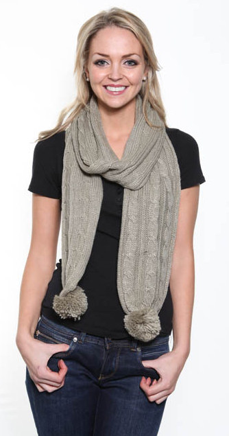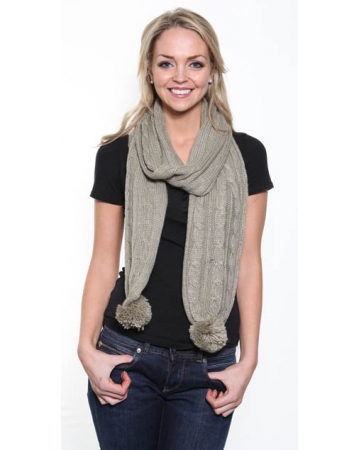 Mens Pepe Jeans Kilburn chunky soft knit scarf in fawn with matching baubles to end and Pepe Jean logo patch to the side.