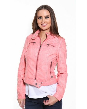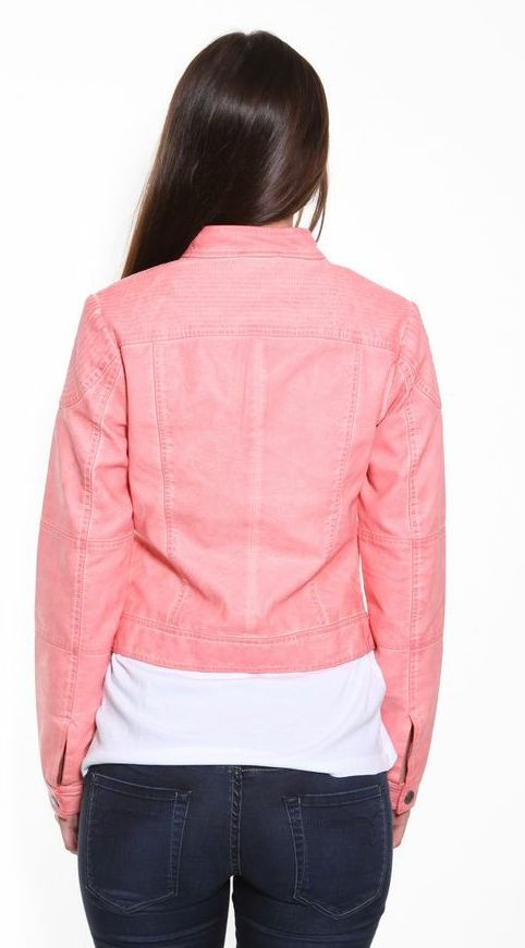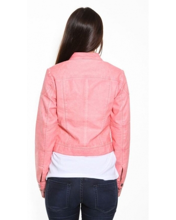 A beautiful spring coral, fitted, soft faux leather jacket, the perfect little jacket to wear during those cool spring days and cooler summer evenings.
