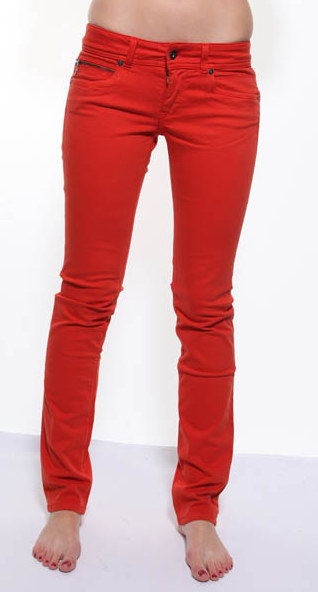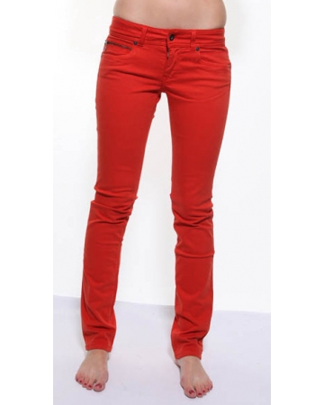 On trend super soft stretch, red slim fit, regular waist jeans with sexy slim legs. A concealed zip-fly and button fastening, two back pockets with stitch design and three front pockets, one of which features a handy zip closure.