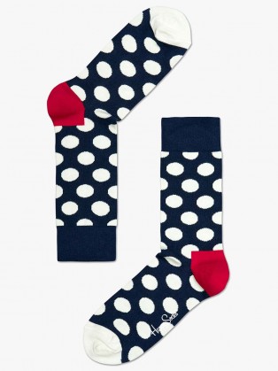 White Polka Dot Print Happy Socks - Navy.
