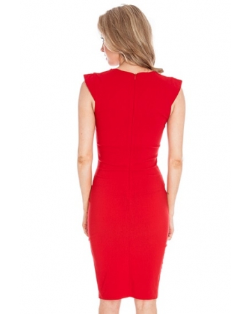 The red dress has a pleated neckline, short cap sleeves and a smart knee lenght, giving the dress a stylish finish.